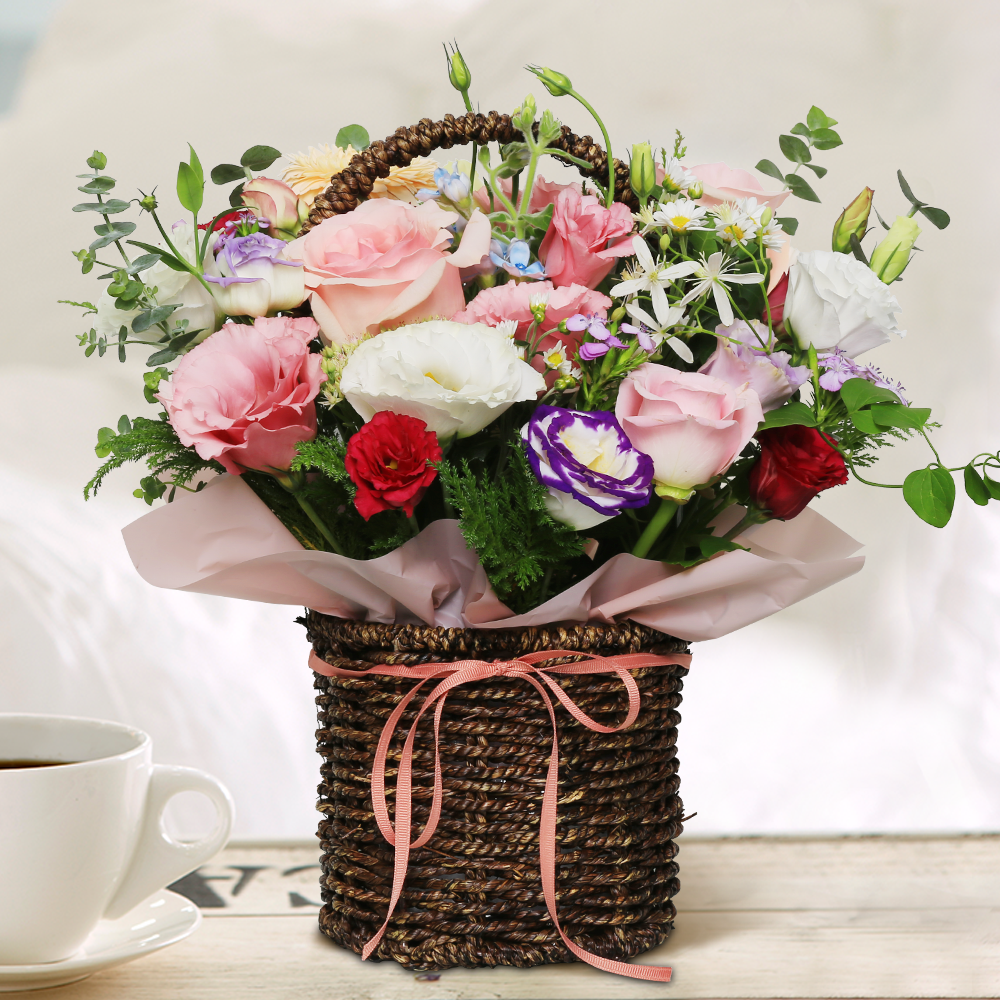 핑크 혼합바구니 (총높이 약35cm)